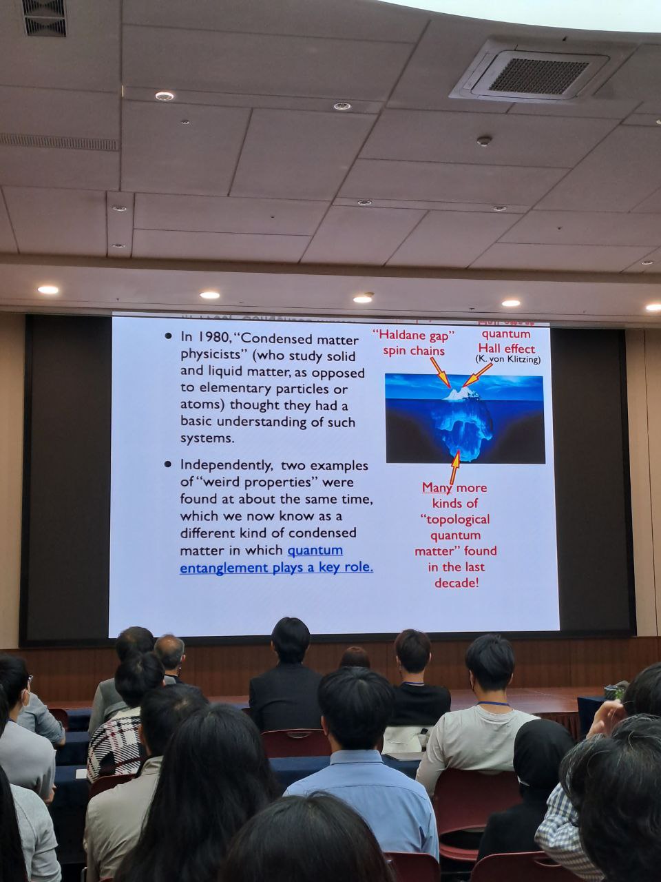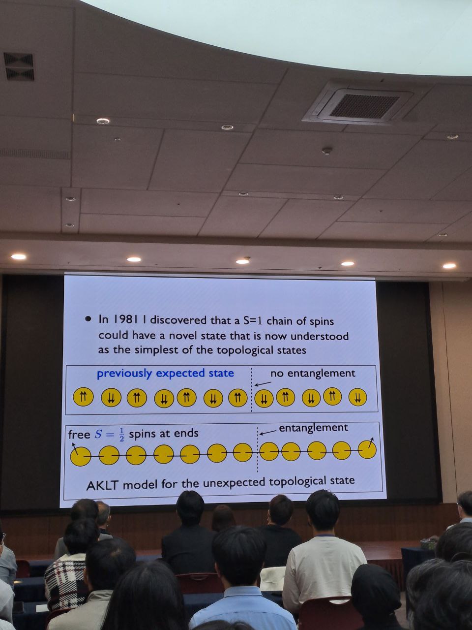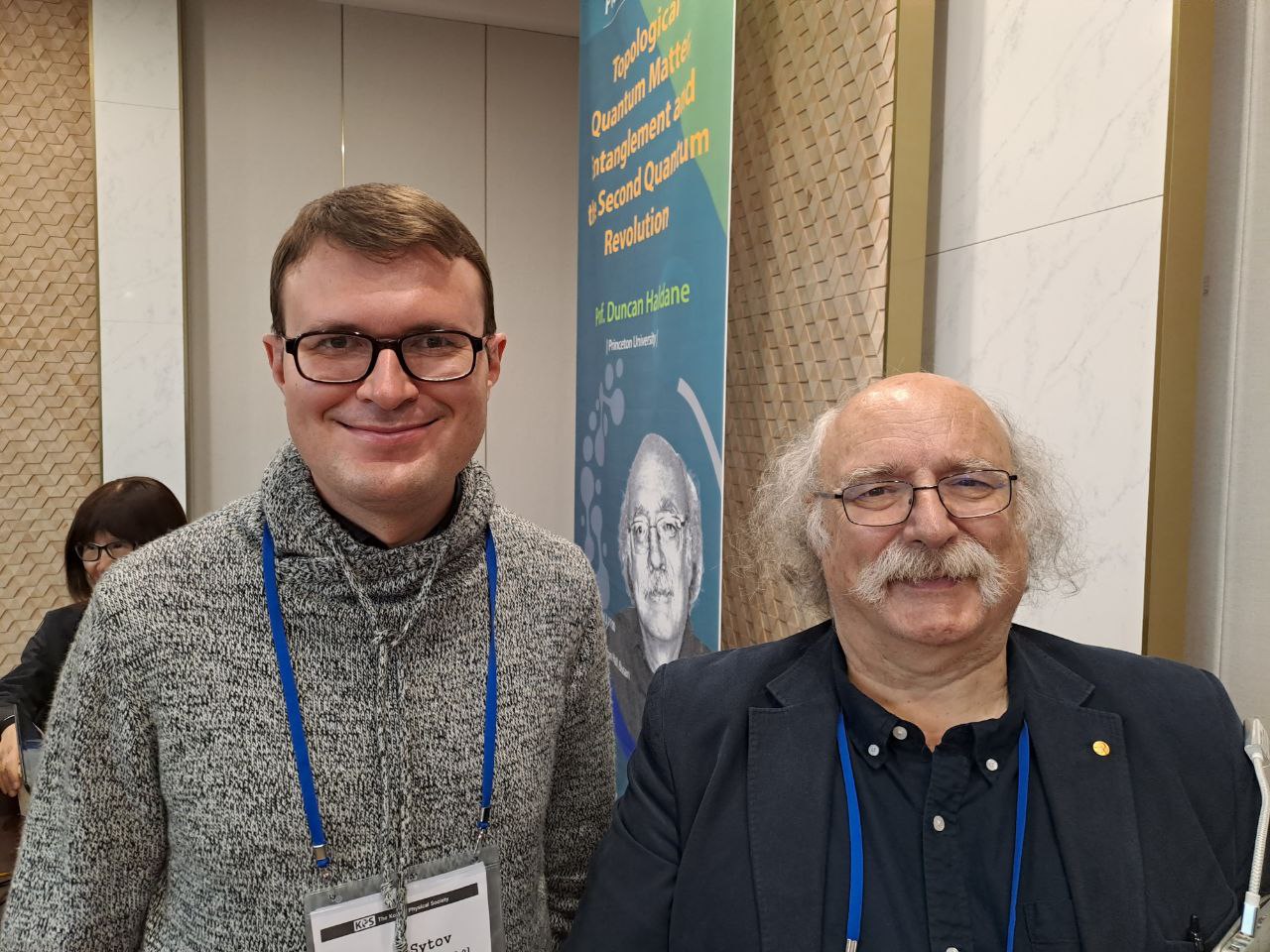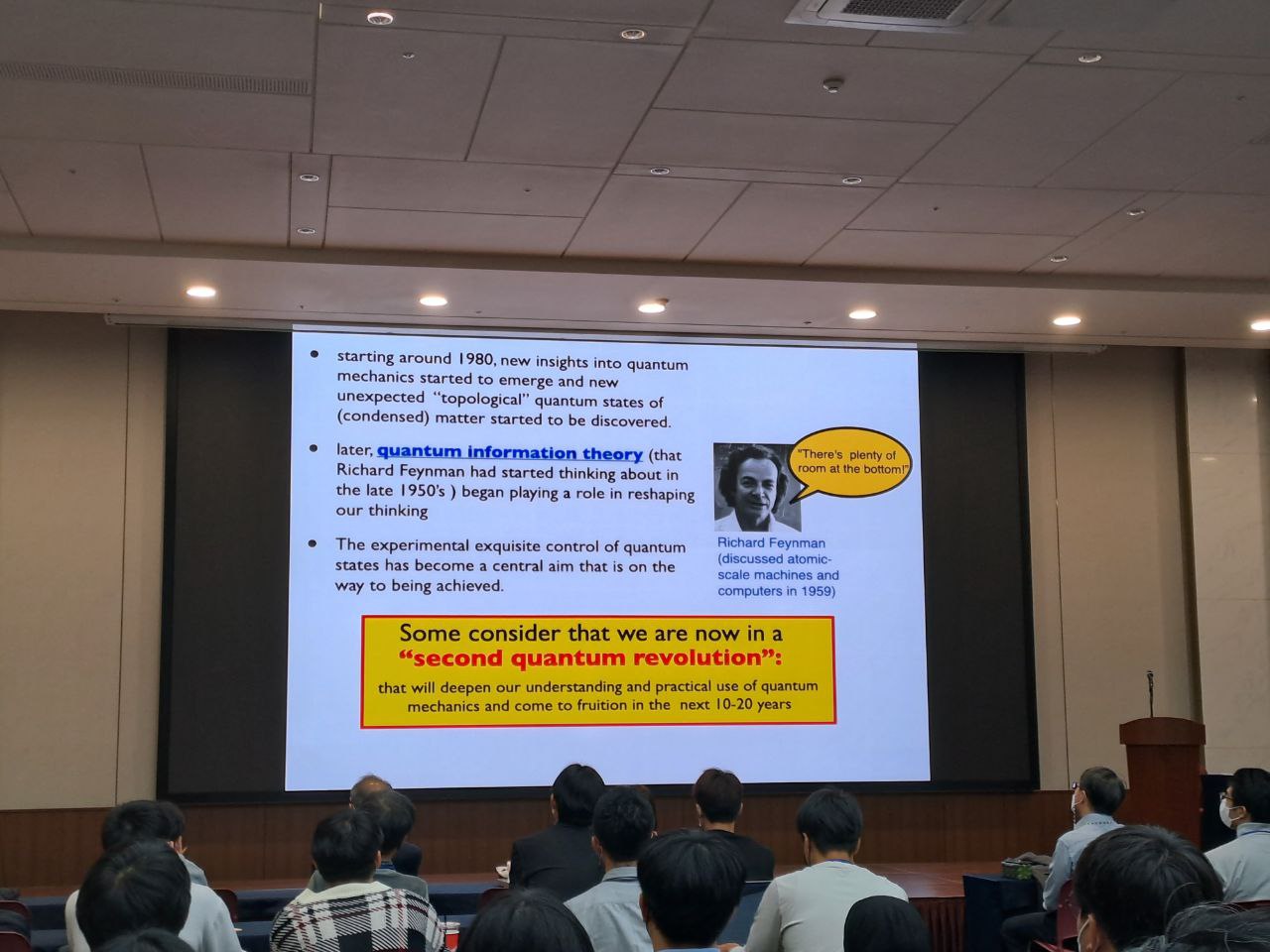 2022-10-22 На международной конференции Корейского физического общества: KPS 70th Anniversary and 2022 Fall Meeting, которая проходит 18-21 октября в г.Пусан, состоялась лекция лауреата Нобелевской премии по физике 1986 г. профессора Дункана Холдейна (Prof. Duncan Haldane) "Topological quantum matter, entanglement and the second quantum revolution" - "Топологическая квантовая материя, запутанность и вторая квантовая революция". В то время как законы квантовой механики остались неизменными и прошли все испытания за последние восемьдесят пять лет, новые открытия, касающиеся экзотических состояний, которые они допускают, «запутанности» и идеи из квантовой теории информации, сильно изменили нашу перспективу и некоторые считают, что в настоящее время происходит «вторая квантовая революция». Открытие неожиданных «топологических состояний материи» и их возможное использование для «топологически защищенной квантовой обработки информации» является одной из важных тем этих разработок и об этом говорится в докладе.