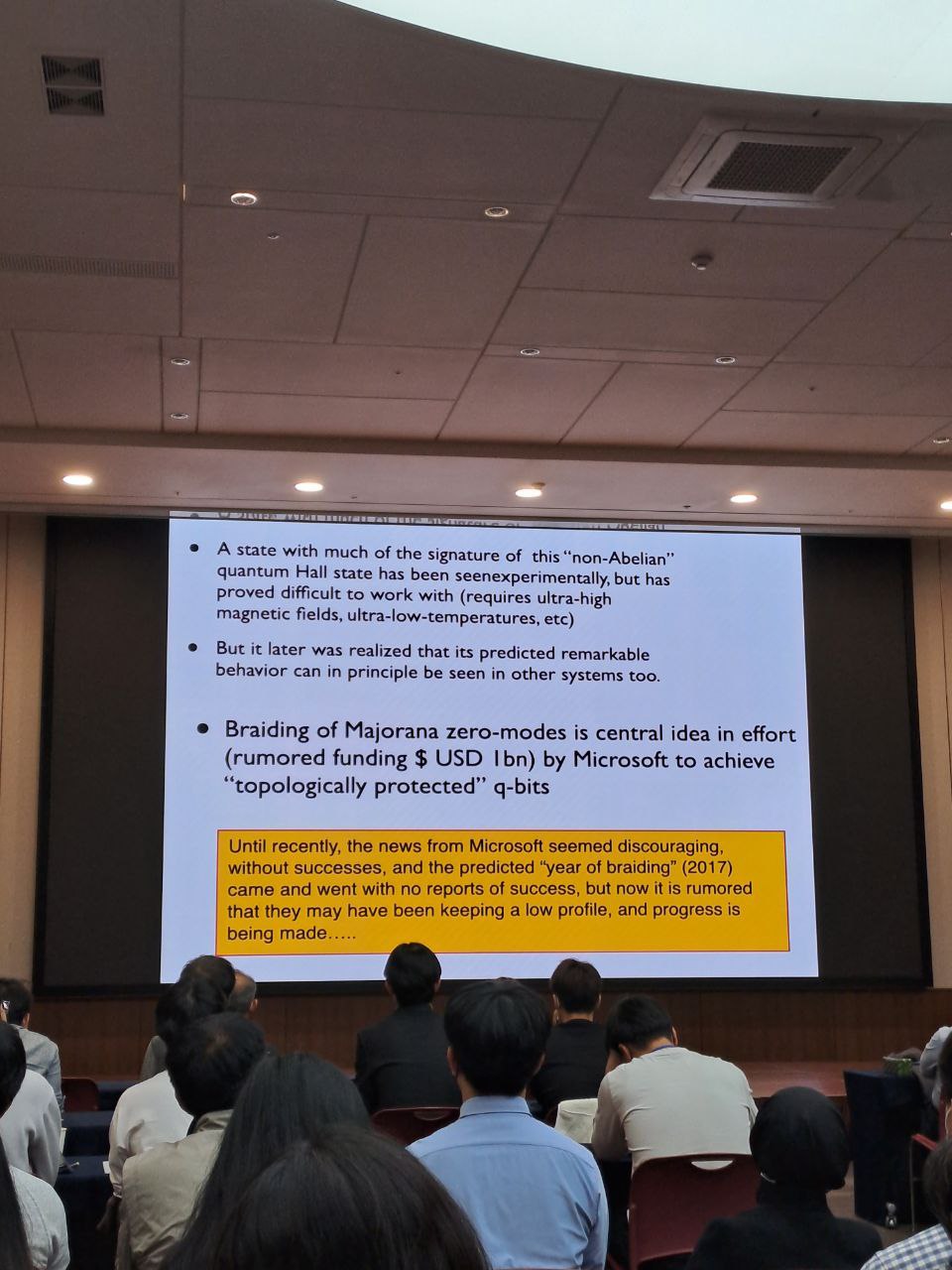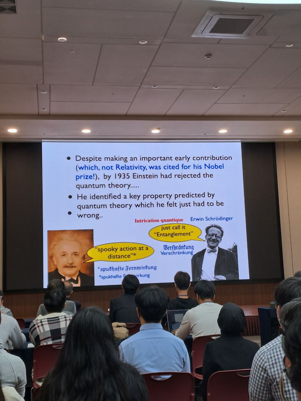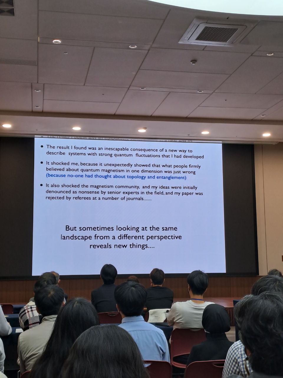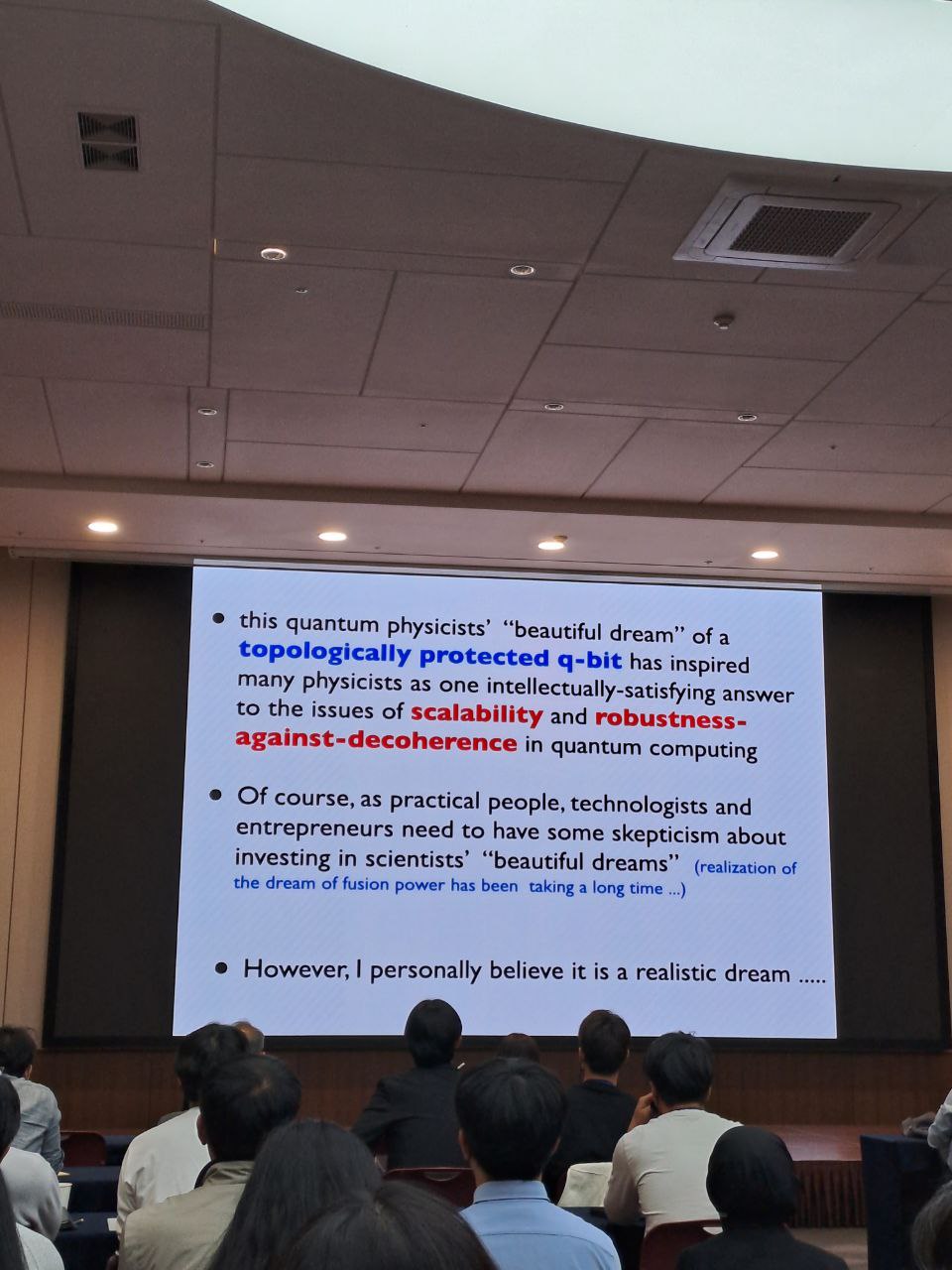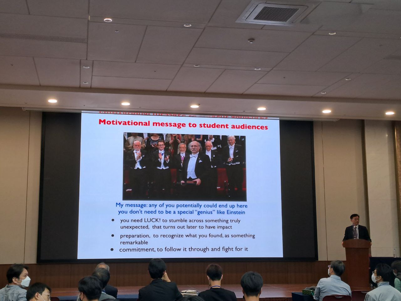 2022-10-22 На международной конференции Корейского физического общества: KPS 70th Anniversary and 2022 Fall Meeting, которая проходит 18-21 октября в г.Пусан, состоялась лекция лауреата Нобелевской премии по физике 1986 г. профессора Дункана Холдейна (Prof. Duncan Haldane) "Topological quantum matter, entanglement and the second quantum revolution" - "Топологическая квантовая материя, запутанность и вторая квантовая революция". В то время как законы квантовой механики остались неизменными и прошли все испытания за последние восемьдесят пять лет, новые открытия, касающиеся экзотических состояний, которые они допускают, «запутанности» и идеи из квантовой теории информации, сильно изменили нашу перспективу и некоторые считают, что в настоящее время происходит «вторая квантовая революция». Открытие неожиданных «топологических состояний материи» и их возможное использование для «топологически защищенной квантовой обработки информации» является одной из важных тем этих разработок и об этом говорится в докладе.