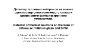 Detector of thermal neutrons on the base of lithium scintillation glass and SiPM 2014-10-14 http://inp.bsu.by/ismart2014/program.htm 16 P. IV International Conference "Engineering of Scintillation Materials and Radiation Technologies" - ISMART 2014, October 12-16, 2014, Belarusian State University, Minsk, Belarus |