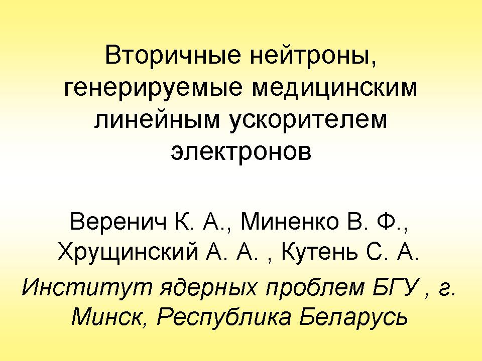 2014-07-04 предоставлено автором 18 Стр. Ключевые слова: медицинские линейные ускорители электронов Презентация доклада на конференции "Ядро 2014", 4 июля 2014, Минск, Беларусь. См. также тезисы по адресу https://elib.bsu.by/handle/123456789/230361 |