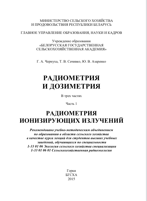 Курс лекций для студ. вузов, обуч. по спец. 1-33 01 06 Экология сельского хозяйства специализации 1-33 01 06 01 Сельскохозяйственная радиоэкология : в 3 ч. Ч. 1 : Радиометрия ионизирующих излучений. - Горки : БГСХА.