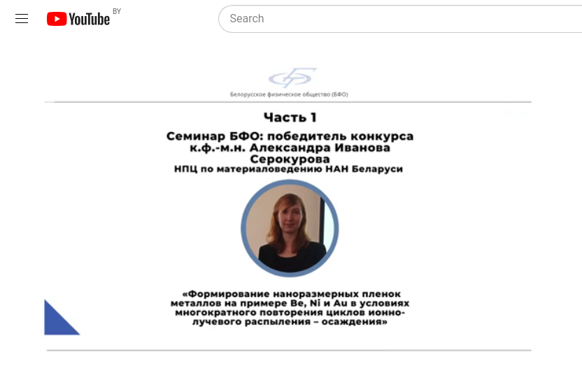 3) доклад к.ф.-м.н. А.И. Серокуровой "Формирование наноразмерных пленок металлов на примере Be, Ni и Au в условиях многократного повторения циклов ионно-лучевого распыления – осаждения" на семинаре БФО;