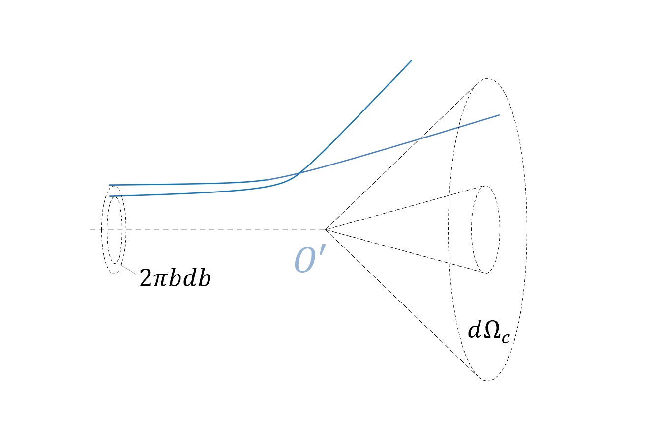 Поскольку до рассеяния пучки однородны по сечению, поток числа частиц с прицельными расстояниями равен плотности потока частиц до рассеяния, умноженной на площадь кольца с радиусами . Тогда число частиц, рассеиваемых в элемент телесного угла за единицу времени, равно