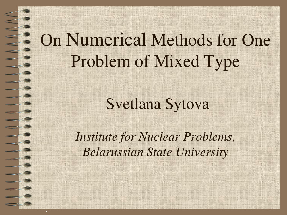 2001-06-03 Presentation at the 6th International Conference "Mathematical Modelling and Analysis" MMA2001, May 31-June 2, Vilnius, 2001, Lithuania 13 P. In this contribution we present analysis of possible finite difference schemes
