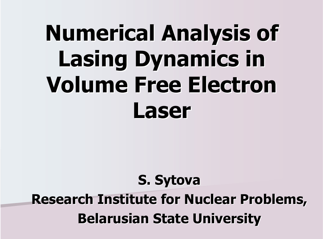 2007-06-06 Presentation at the 12th International Conference "Mathematical Modelling and Analysis" MMA2007. May 28–31, 2007, Trakai, Lithuania 29 P. At present time Volume Free Electron Lasers (VFEL) with volume