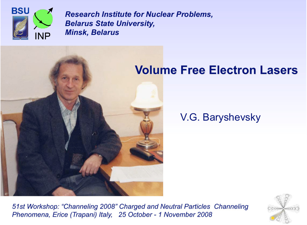 2008-11-01 Presentation of invited talk at the 51st Workshop “Channeling 2008” - Charged and Neutral Particles Channeling Phenomena