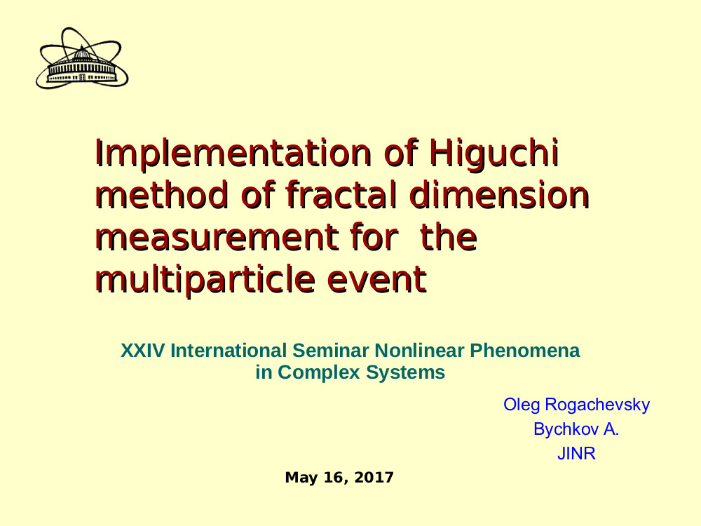 NONLINEAR PHENOMENA IN COMPLEX SYSTEMS. Fractals, Chaos, Phase Transitions, Self-organization. Minsk, MAY 16 – 19, 2017. Belarus. XXIV Annual Seminar.