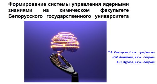 УДК 378 : 544.58 : 502 2025-11-29 Источник: 1-я Междунар. конф. "Ядерные знания в XXI веке" (26 ноября 2025 г., Минск, Беларусь) Ключевые слова: обучение, менеджемент знаний, ядерные знания, радиационная безопасность, атомная энергетика Презентация доклада профессора, доктора хим. наук Савицкой Татьяны Александровны на 1-й Международной научно-практической конференции "Ядерные знания в XXI веке", состоявшейся 26 ноября 2025 г. в г.Минск. Работа представлена авторским коллективом Химического факультета БГУ (Минск, Беларусь).