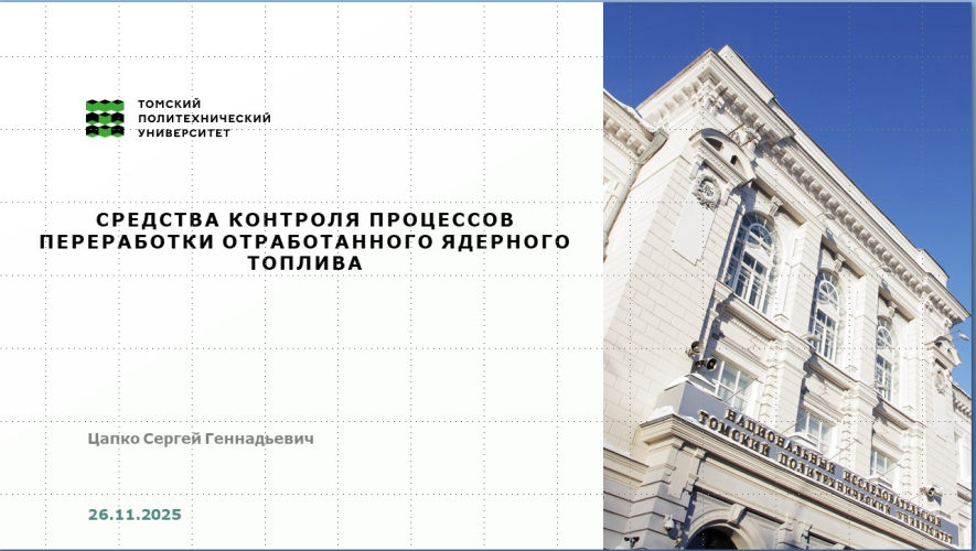 Презентация доклада директора научно-образовательного центра топ-инженерии в сфере информационных технологий ТПУ, канд. техн. наук Цапко Сергея Геннадьевича на 1-й Международной научно-практической конференции "Ядерные знания в XXI веке", состоявшейся 26 ноября 2025 г. на базе Института ядерных проблем БГУ (Минск, Беларусь). Доклад представлен от авторского коллектива Томского политехнического университета.
