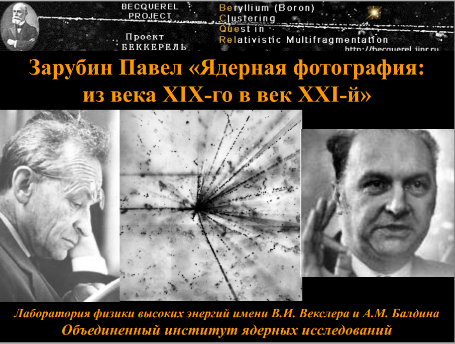 УДК 539.1.05 2025-11-29 Источник: 1-я Междунар. конф. "Ядерные знания в XXI веке" (26 ноября 2025 г., Минск, Беларусь) Ключевые слова: ядерная физика, треки частиц, фотография Презентация доклада начальника сектора лаборатории физики высоких энергий им. В.И.Векслера и А.М.Балдина Объединенного института ядерных исследований, доктора физ.-мат. наук Зарубина Павла Игоревича на 1-й Международной научно-практической конференции "Ядерные знания в XXI веке", состоявшейся 26 ноября 2025 г. на базе Института ядерных проблем БГУ (Минск, Беларусь).